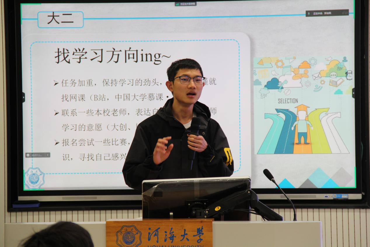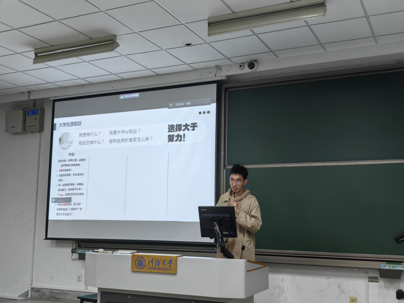 智能科学与技术专业的程凡同学成功保研至河海大学,他主要就“学生工作给我们带来什么”这个话题展开分享,指出参与学生工作能够提升个人组织能力,锻炼自身协调能力,丰富个人简历,并分享了社会工作所培养的能力在自己保研过程中所发挥的积极作用,以及自己在社会工作中的相关经验,给出了如何在迷茫期调整的相关方法。