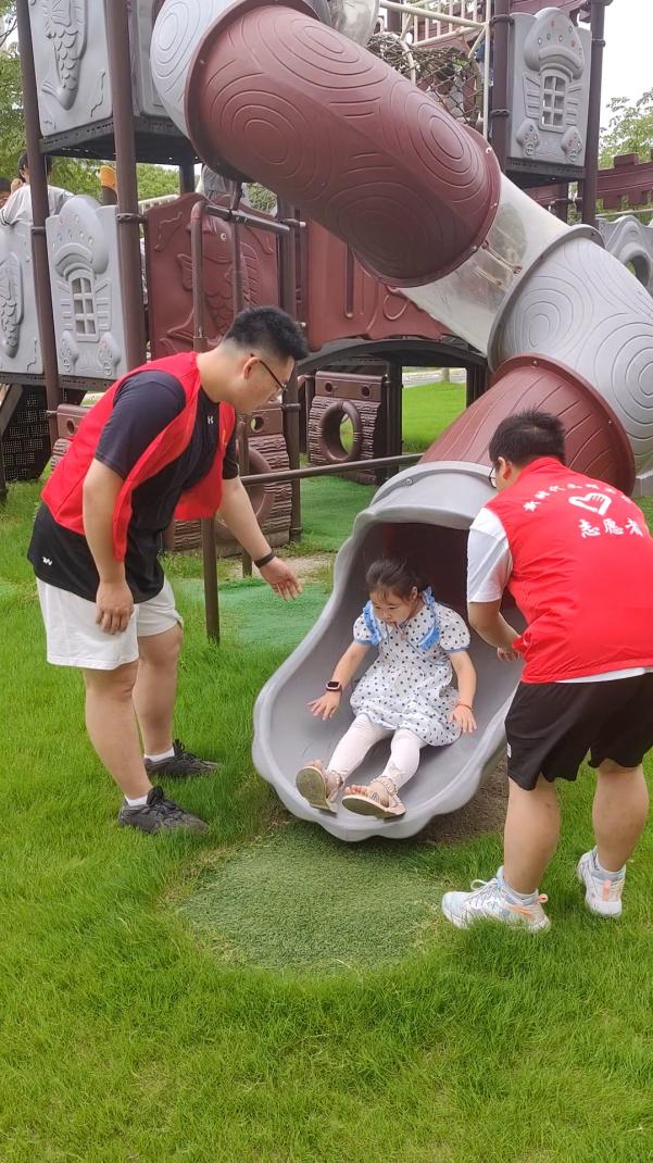 志愿者们全程陪伴孩子们参与滑梯、乒乓球和象棋等活动,不仅确保他们的安全,还促进他们的思维能力提升。在明媚的阳光下,志愿者们耐心地向孩子们介绍滑梯的使用规则,并用温暖的语言引导他们学会排队等候,培养良好的秩序感。孩子们在滑梯上尽情欢笑,志愿者们始终在旁,保障他们的安全。这不仅仅是简单的娱乐体验,更是心灵交流和成长的见证。