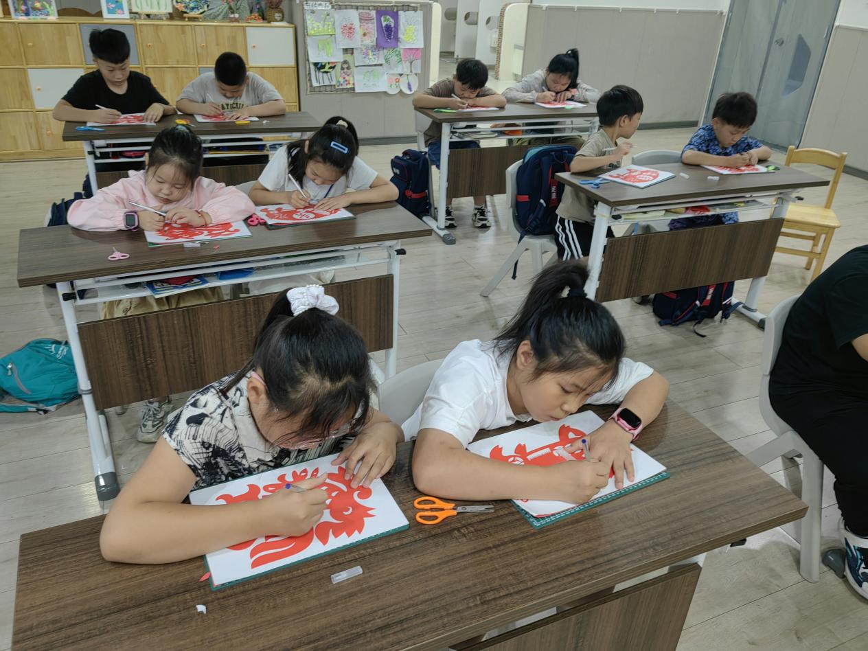 在国家级非物质文化遗产——“金坛刻纸艺术”的传承人指导下,孩子们领略了这一传统文化的迷人魅力。他们与志愿者一同探索这项源远流长的美术技艺,在红纸上轻轻摩挲,用剪刀展开了一场关于美的创作之旅。通过动手实践,孩子们不仅掌握了刻纸的基本技巧,还深刻体会到了金坛刻纸艺术的独特魅力和丰富文化内涵。