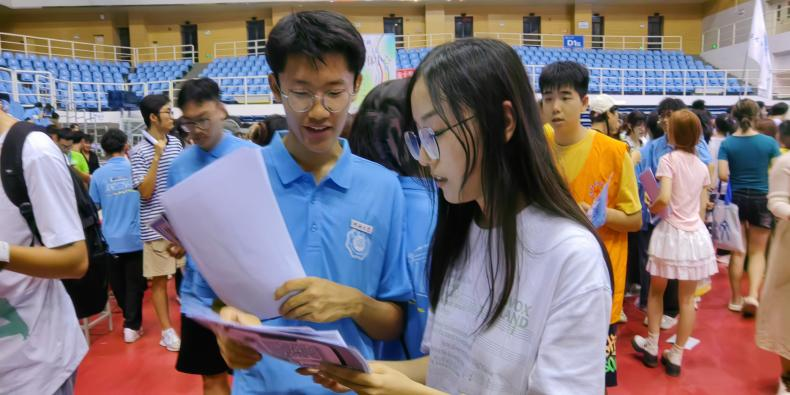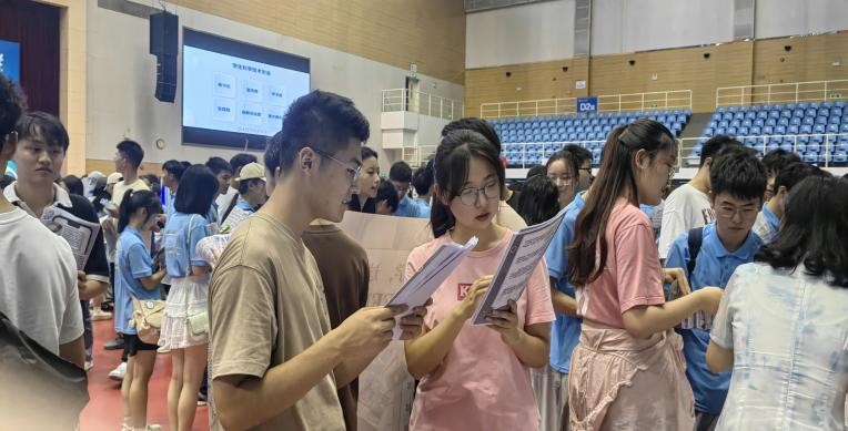 912日下午4时,参与招新的学生干部乘坐大巴车于常州校区集体前往江宁校区。招新工作于下午6时在文体中心篮球馆正式开始。上一届任职的干部们发挥余热,早早搭建摊位准备传单。各学生组织从主席到部长皆积极参与,向参与本次活动的新生派发宣传页,耐心讲解部门工作性质,为学生答疑解惑并鼓励大家踊跃报名。活动伊始便收获强烈反响,前来咨询的新生逐渐增多,学院摊位一时间门庭若市。参与活动的2024级新生们对学生组织表现出了浓厚的兴趣,纷纷加入相关群聊,留下联系方式与意向部门,希望能够投身于学生组织大家庭。