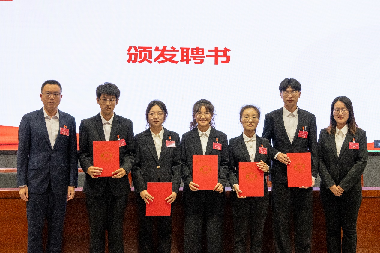 大会选举产生了yl88858cc永利官网第一届学生会、第一届研究生会主席团成员,学院党委副书记李晓东老师、学院团委书记贾婷婷老师为他们颁发聘书。