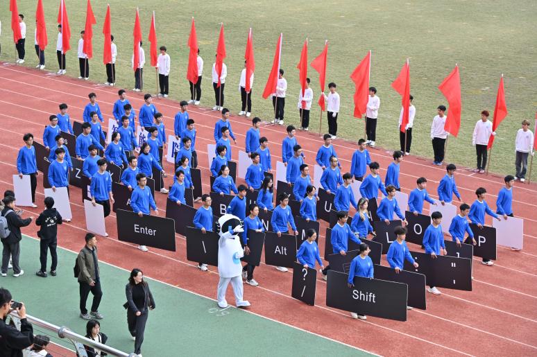迎面走来的智能院方阵,他们穿着深蓝色的衣服,迈着坚定的步伐,透着沉稳的气质,手握一个个“Shift”,“Alt”键,展示着他们对于自己专业的理解与热爱。