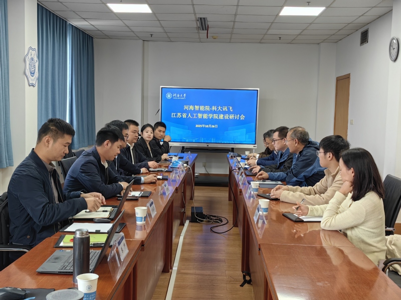 10月26日,yl88858cc永利官网与科大讯飞股份有限公司在河海大学召开江苏省省级人工智能学院建设专题研讨会。智能院院长刘小峰、副院长胡银龙及教师代表和科大讯飞副总裁陈红斌、高教事业群副总经理尹明磊等企业代表参加研讨会,双方围绕人工智能人才培养、学科建设、科研合作等议题展开深入交流,共同探讨校企合作新模式,助力人工智能教育高质量发展。